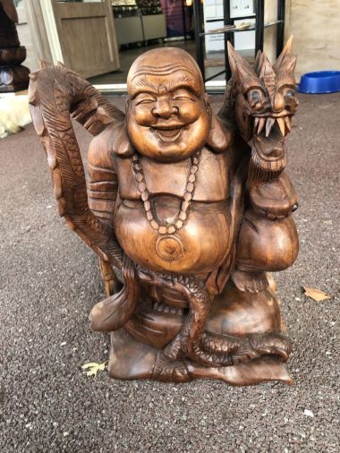 Bouddha chinois avec dragon en bois de 40cm