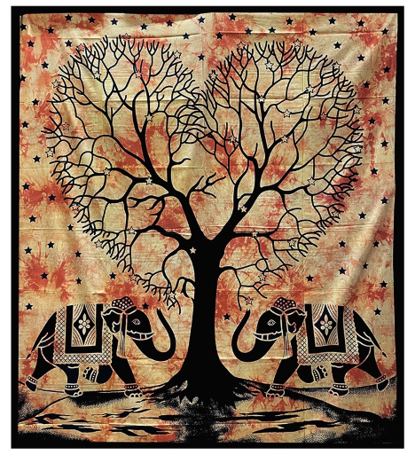 Tenture Arbre de Vie & 2 Eléphant Orange
