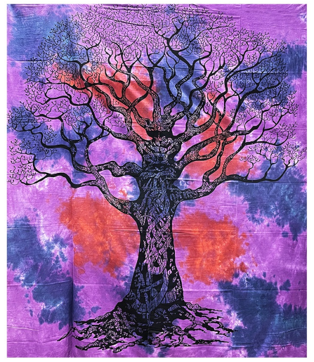 Tenture Arbre de Vie Mauve, Rouille, Bleu Pétrole