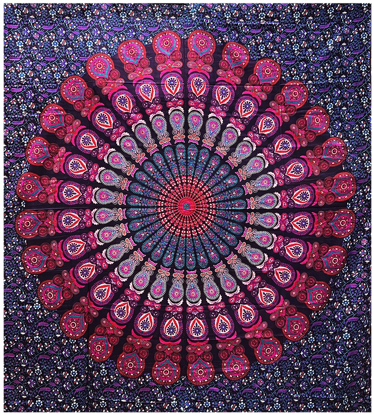 Tenture Mandala Mauve, Rose, Bleu Pétrole