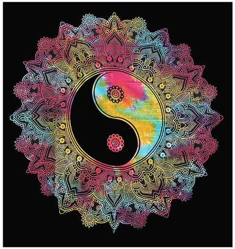 Tenture Ying Yang Jaune Rose Turquoise
