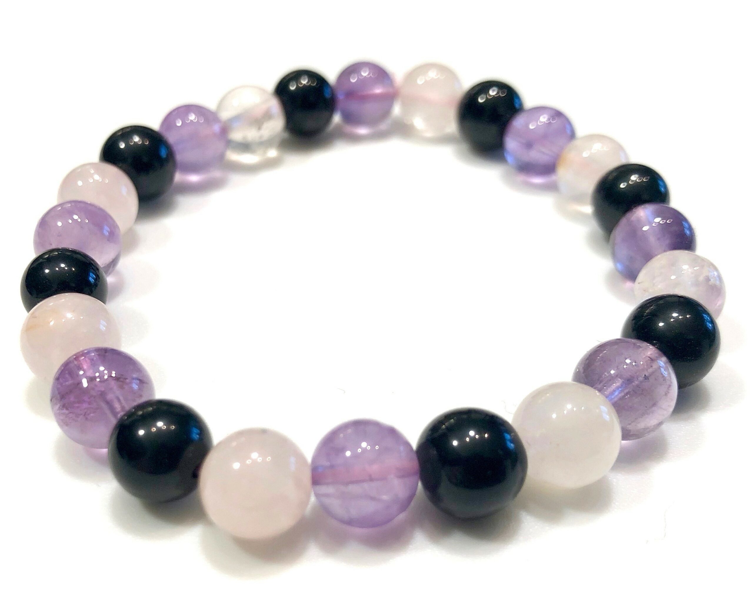 Bracelet Sommeil 8mm : Améthyste, Quartz rose & Tourmaline noire
