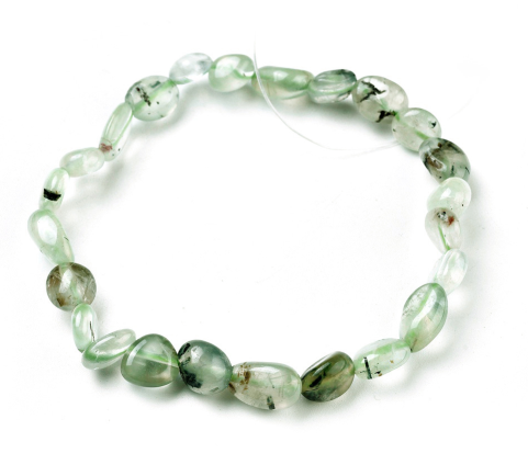 Bracelets extensibles en perles de préhnite naturelles, pierre tombée, nuggets, 2″ (5~5,2cm); perle: 4~12×4~8mm