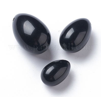 Oeufs de Yoni en obsidienne naturelle, pierre d’oeuf, 45~46×30 mm; 39~40×25~25,5 mm; 30~31×20~20,5 mm; trou: 1,5~2 mm; 3 pièces / ensemble