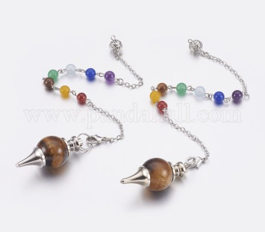 Pendule Sephoroton en Oeil de Tigre, accessoires en laiton, chakra, ronde, platine, 240~245mm