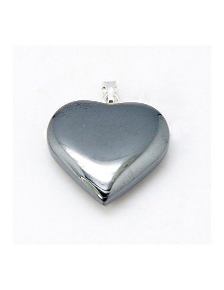 Pendentif coeur hématite, avec bélière en fer, 20x20x5 mm, Trou: 2x5 mm